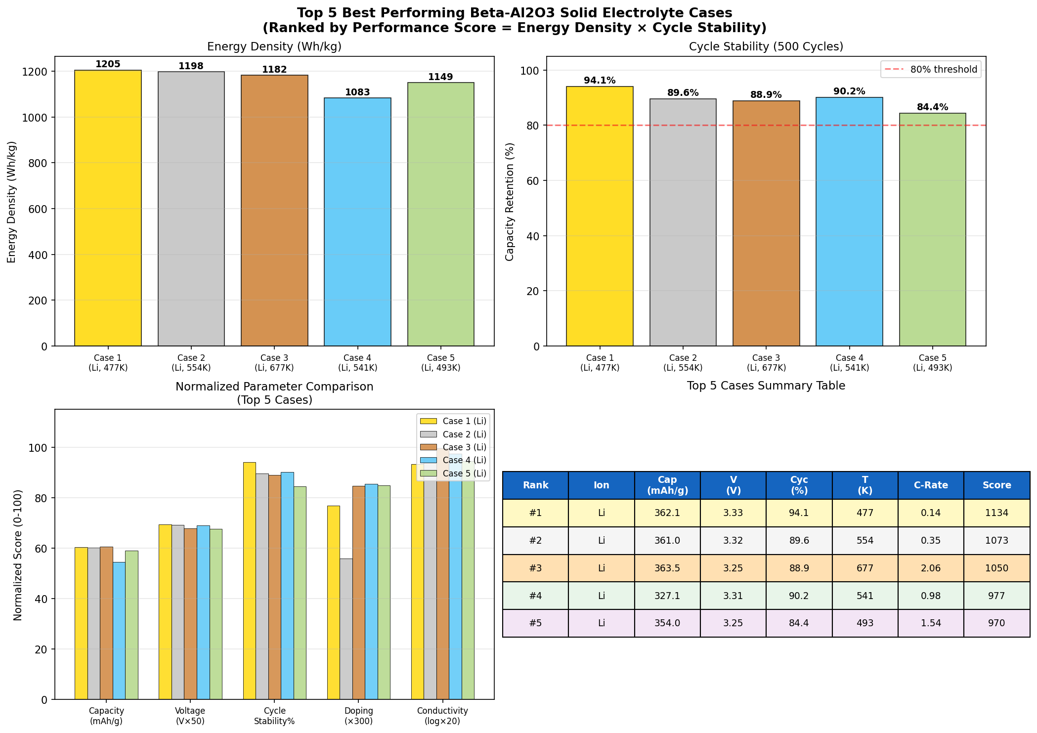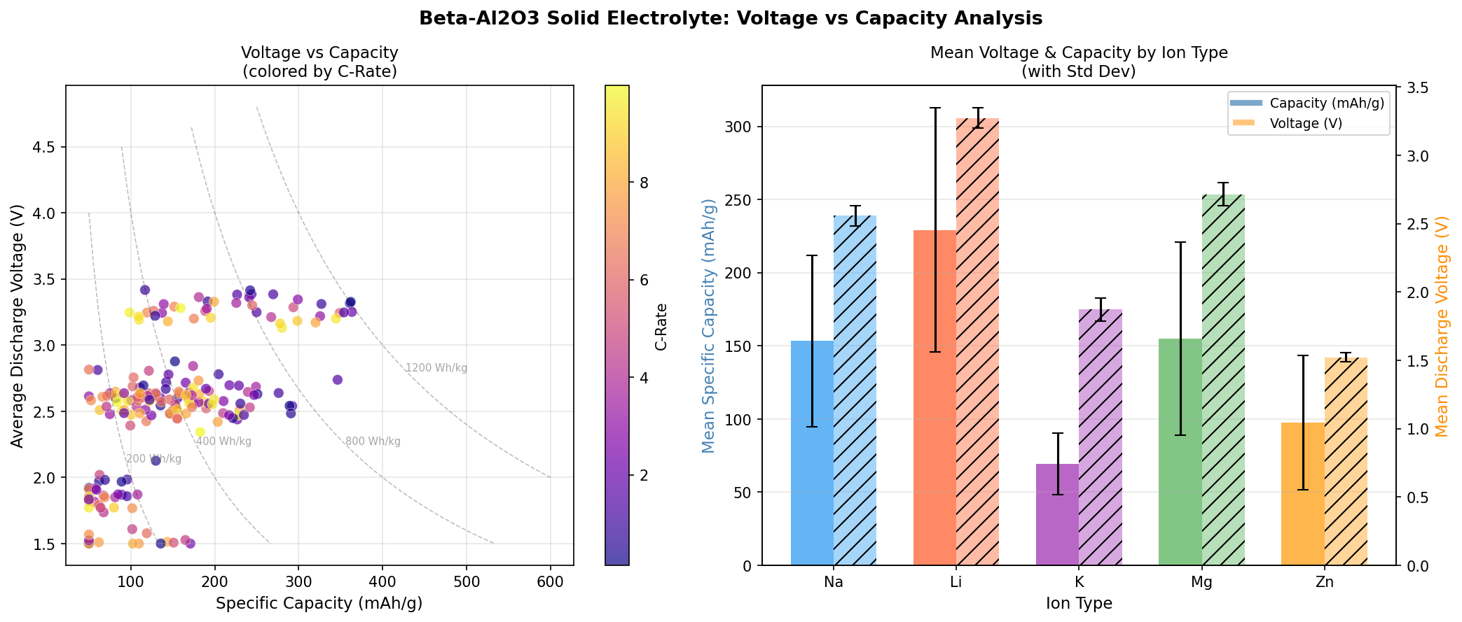 Our recent computational study sweeping across 200 simulated cases adds important new evidence to that quest. The headline result: a peak theoretical capacity of 363.46 mAh/g achieved at an optimal operating voltage of 3.25 V—numbers that put β-Al₂O₃-based architectures squarely in conversation with the most promising solid electrolyte systems being developed worldwide.