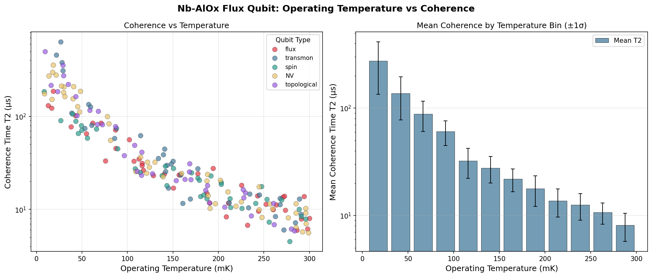 It's worth noting that fluxonium qubits — a close cousin of the flux qubit — have recently demonstrated coherence times exceeding 1 millisecond in select experiments. However, these devices often require more complex circuit designs and very precise fabrication. The Nb-AlOx flux qubit may offer a more practical middle ground: outstanding performance without the extreme engineering overhead.