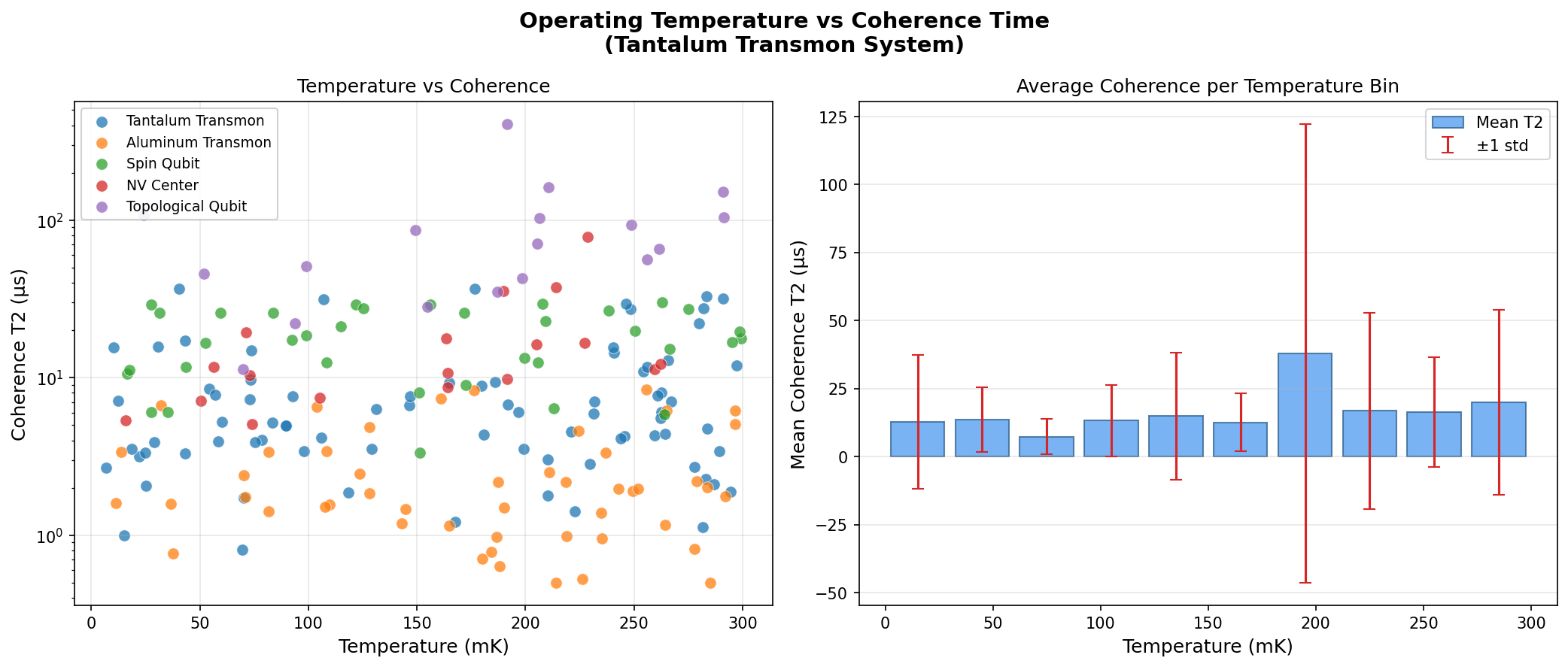 - Niobium Transmons (the incumbent): Typical coherence times of 50–100 μs, gate fidelities around 99.5–99.8%. Niobium is easier to deposit and pattern, but its multi-phase native oxide is a decoherence magnet. Tantalum's 406 μs peak represents a 4–8× improvement in coherence and a tangible fidelity uplift.