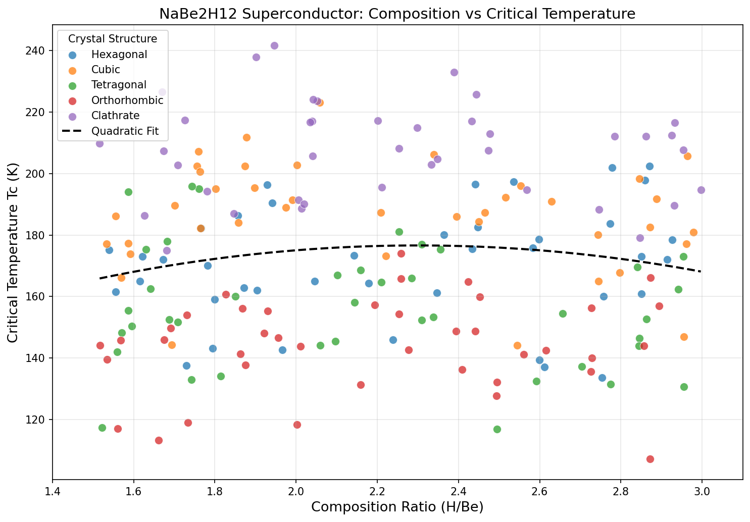 The use of beryllium is unusual. Beryllium is light (good for boosting phonon frequencies) and forms stiff, covalent bonds that can help stabilize exotic hydrogen architectures. The ternary (three-element) design space is vast and largely unexplored, which is why computational screening is so valuable right now.